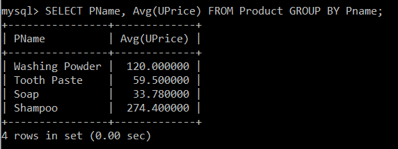 h. SELECT PName, Avg(UPrice) FROM Product GROUP BY Pname;