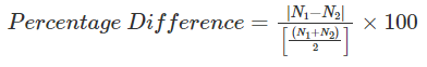If we are given with two values and we need to find the percentage difference between the two values, then it can be done using the formula: