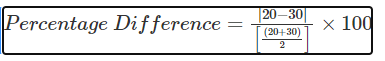 For example, if 20 and 30 are two different values, then the percentage difference between them will be: