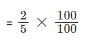Example: 2/5 × 100 = 0.4 × 100 = 40 per cent