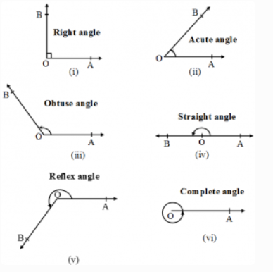 Angle: Two different rays starting from the same fixed point forms an angle. Symbol ∠ is used to represent an angle.
