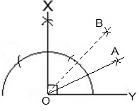 Step 2: Bisector of ∠XOY is drawn such that ∠BOY = 45° is constructed.