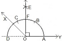 Step 4: With B and C as centres, arcs are made to intersect at E and ∠EOY = 90° is made.