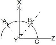 Step 2: With Y as a centre and any radius, an arc ABC is drawn cutting YZ at C.